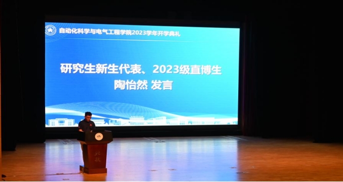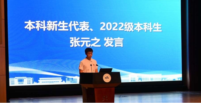 新本科生新生张元之与研究生新生陶怡然分别上台发言。他们以自身经历告诉大家:应该努力拼搏、坚定信念、付出努力、学会坚守,无论在什么样的情况下,我们都应该保持良好的心境。