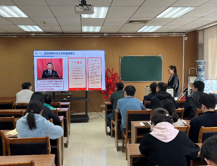 辅导员张千祎、杨梦妮对新闻宣传工作进行了分享培训。她们从宣传思想文化工作三个事关、七个着力出发,强调了宣传思想文化工作的重要意义。并结合学院微信公众号、网站等平台宣传工作的经验,详细介绍了新闻发布的流程与具体实操。她们表示新学期要加大学院宣传力度,打造学院特色品牌。