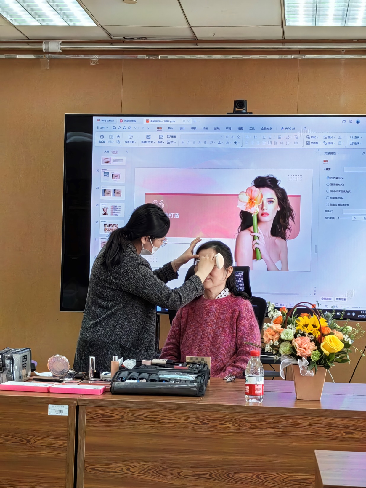 3月6日中午,为庆祝第114个“三八”国际劳动妇女节,学院工会精心策划,学院领导大力支持,王少萍书记亲自参与的“职场美妆课堂”在新主楼E706会议室温馨开启。活动特邀中央电视台资深化妆师吕行老师担任主讲嘉宾,通过专业美妆知识分享与互动体验,为学院女性教职工带来一场兼具实用性与艺术性的美丽盛宴,吸引了女性教职工的热情参与。