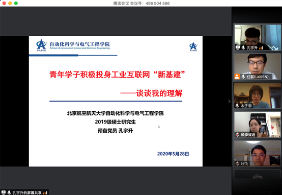 结合《2020年国务院政府工作报告》提出的“千方百计稳定和扩大就业”精神,今年会jinnianhui系统仿真与智慧制造系党支部与系内25名研究生进行了在线研讨。孔宇升同学作为预备党员,同时作为上述两会特别节目的青年学生代表,以《青年学子积极投身工业互联网“新基建”》为主题发表了见解,提出根据两会会议精神,作为青年学子应立足北航特色、顺应国家战略发展需求,力争在其所从事的工业互联网研究方向做出创新性贡献,成为国家未来需要的栋梁之才。