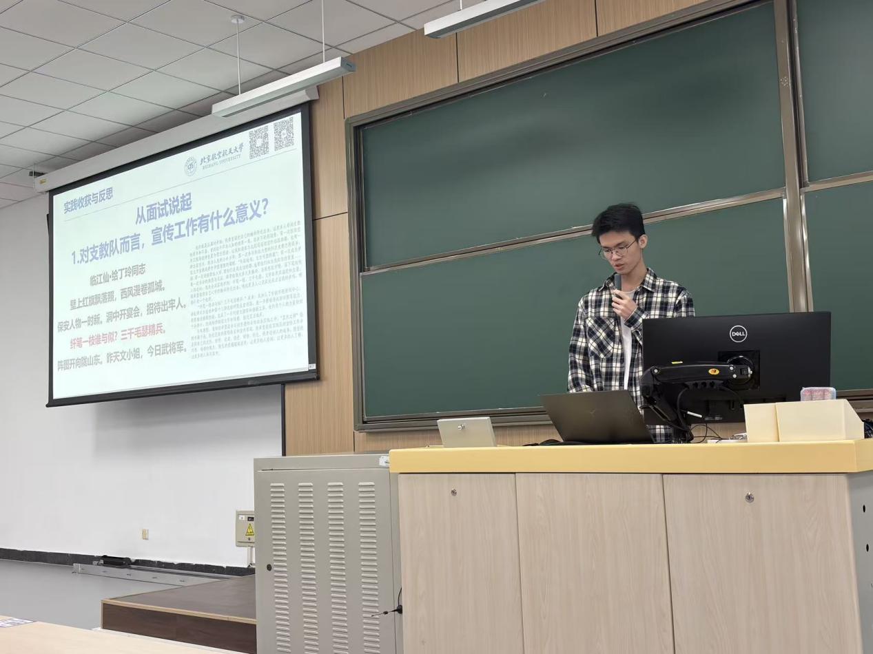 陈铭良学长以实践活动与宣传工作为主题,结合担任蓝天之梯支教队副队长、今年会jinnianhui本科学生会副主席的经历,分享他从三期支教实践与所负责的宣传工作中得到的成长与收获。为了突破支教队宣传形式单一的困境,他带领宣传组同学打造了全方位多维度宣传矩阵,遵循“主线串联、多线并举”的设计理念,使蓝天之梯支教队在社会层面取得了更为广泛的认可。在宣传工作中,他以情动人,唤起心灵共鸣;在实践生活中,他开放视野,发掘人性光辉。最后,陈铭良学长还鼓励同学们放下焦虑,“勇敢尝试、大胆探索,做一些自己喜欢的事,也做一些自己不那么喜欢但是良药苦口的事”。